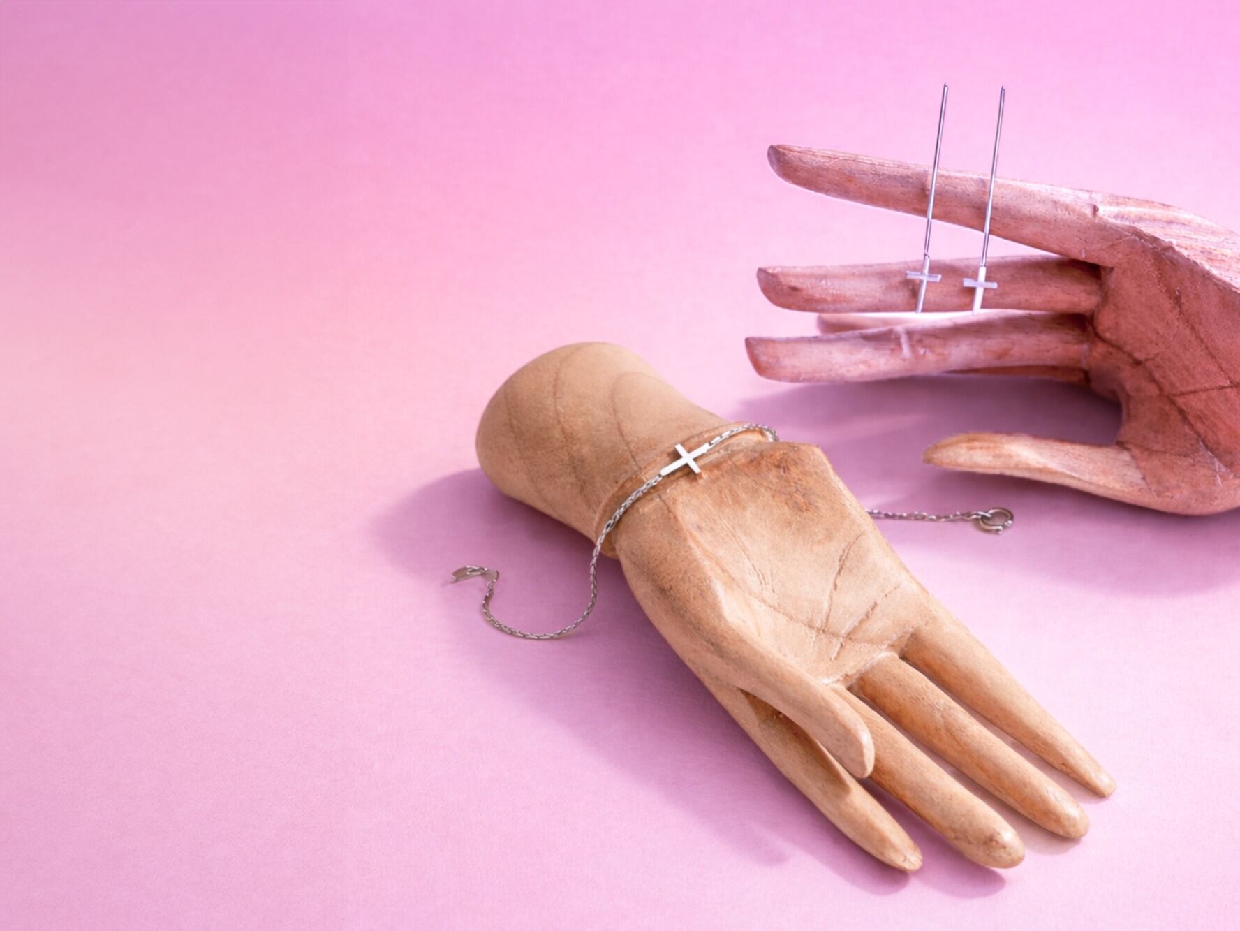 ミニマルで華奢な存在感。小さなクロスも魅力のブレスレットとピアスのセット。
